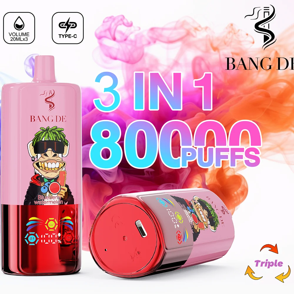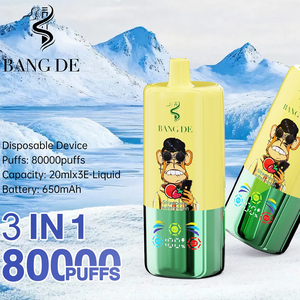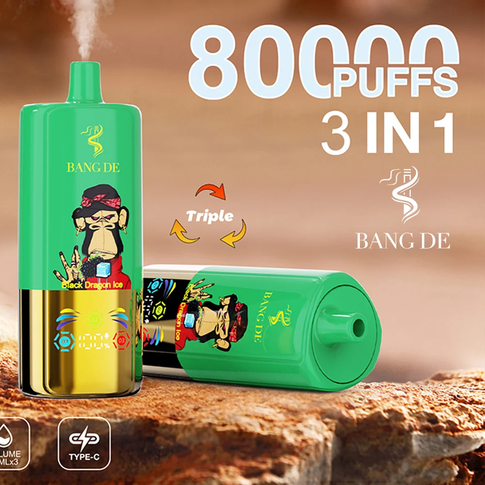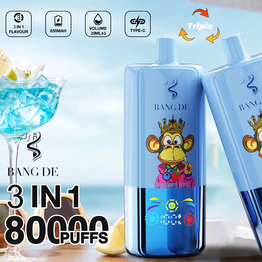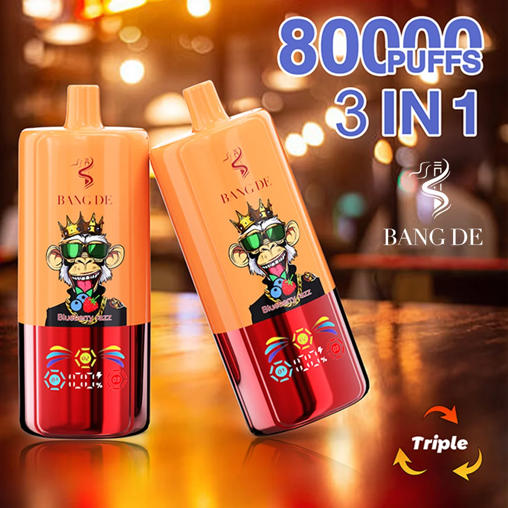 The Bang DE Triple 80000 puffs disposable vape featuring a unique 3-in-1 rotating flavor switch and iconic Monkey Design.