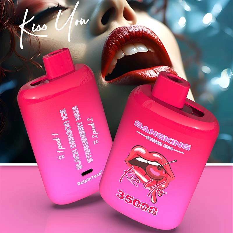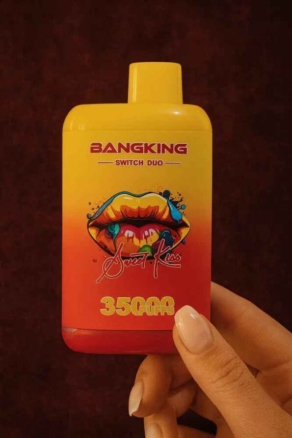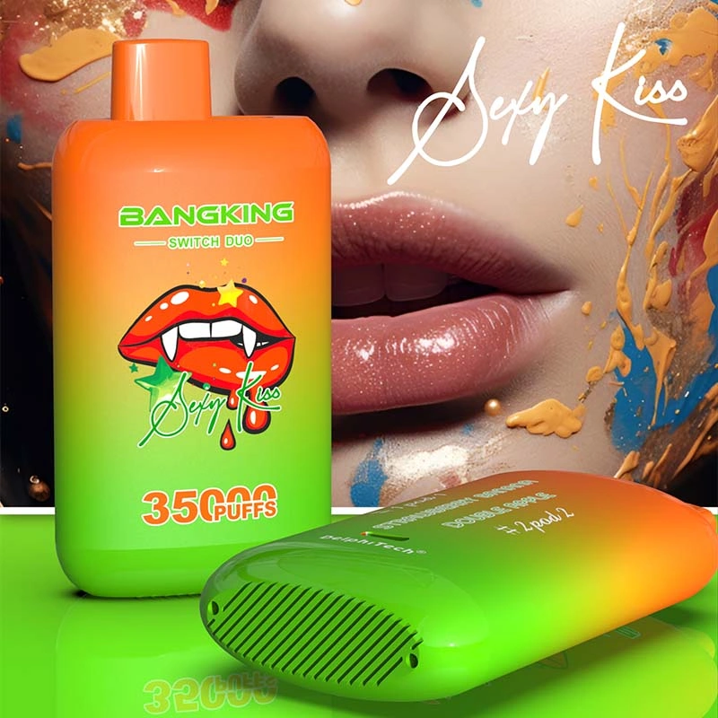 The BANG KING Switch Duo 35K puffs vape is built for convenience and fun. It has a smooth design with oily lips and tongue, with bright, eye-catching colors that match the double flavor inside.