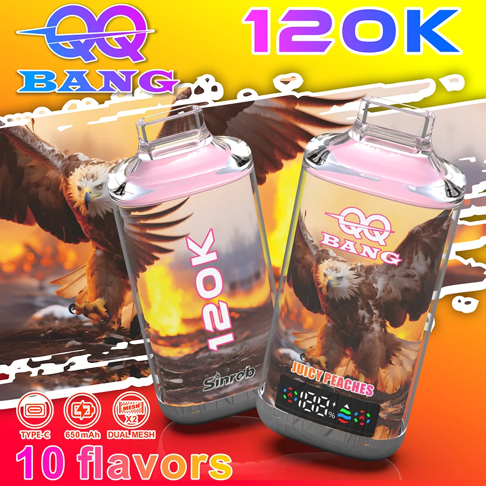 The QQ BANG 120000 Puffs is a high-performance disposable vape featuring the iconic Eagle Design. It delivers exceptionally rich flavor and massive vapor clouds. Available in 12 premium flavors, it is the top choice for European vapers seeking luxury aesthetics and industry-leading puff capacity.